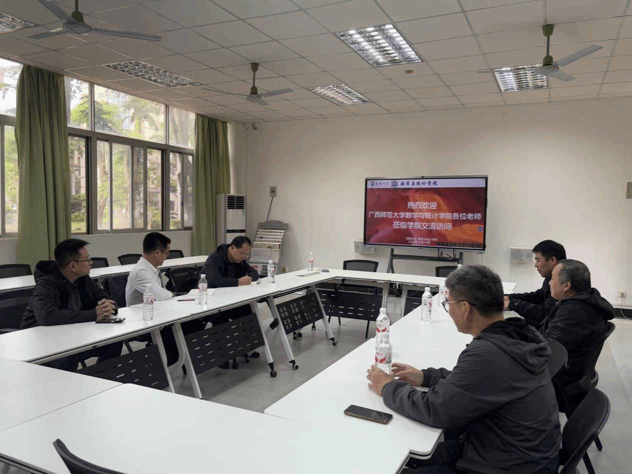 2025年11月20日下午,广西师范大学数学与统计学院副院长卢家宽一行四人来院交流。我院院长刘合国、副院长张晨光和刘阿明出席会议。