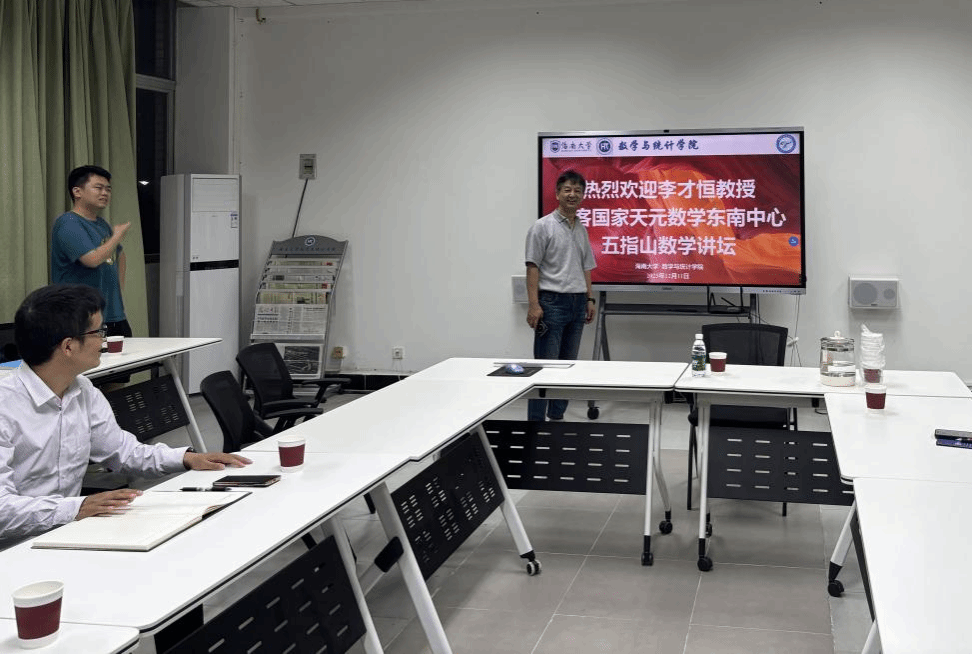 12月11日,南方科技大学讲席教授、国家特聘专家李才恒教授应邀来海南大学数学与统计学院,作题为“Coverings of Groups, Regular Dessins, and Surfaces”的五指山数学讲坛第10讲学术报告。
